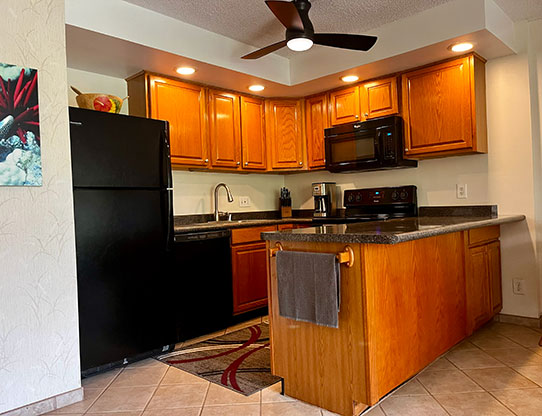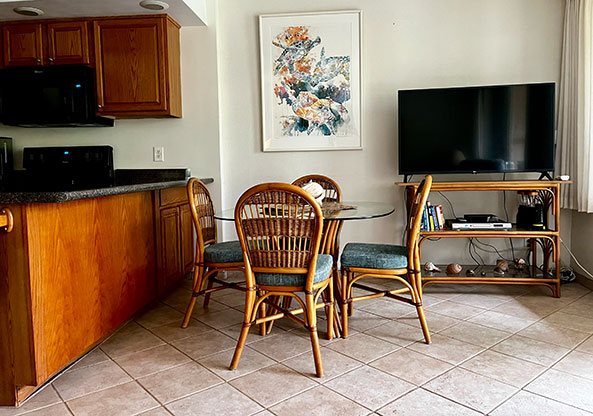 Welcome to our home away from home! As owners, we spend many months each year here at our Slice of Paradise. We can offer you an ideally located condominium unit with upgrades and furnishing we demand for our comfort. Cool tile floors throughout accent the tropical essence of Maui. A well-designed and equipped kitchen works for your “eat in” days.